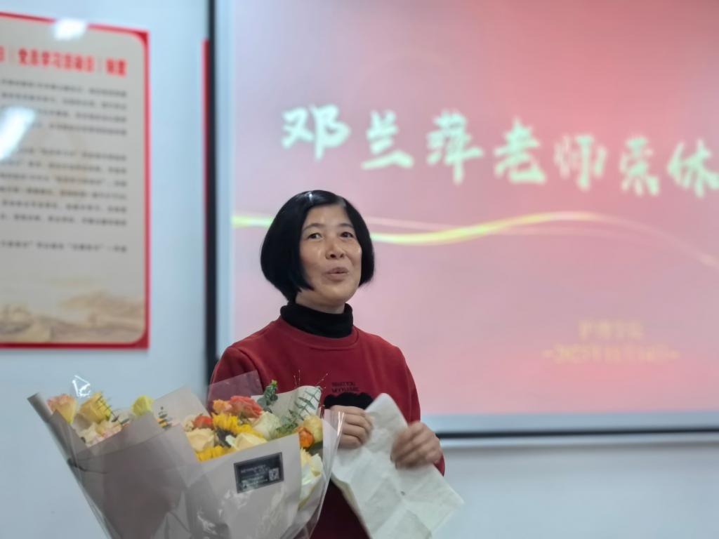 整个欢送会充满温情和感动,展现了学院师生对邓兰萍老师的深深敬意。这场荣休欢送会不仅是一次对邓老师的致敬,也是对全院师生团结一心、共同发展的鼓励。我们相信在未来的日子里,护理学院将以更加优秀的姿态继续前行,为社会培养更多优秀人才,为祖国的护理教育事业作出更大贡献!