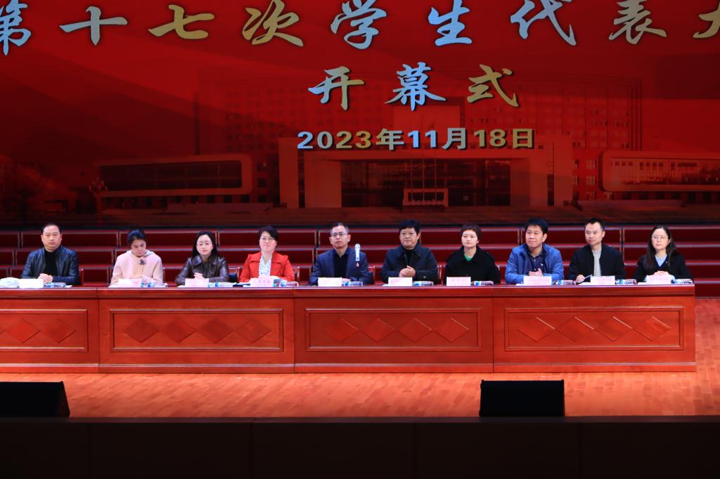 第一次全体会议上,第十七次学生代表大会筹备委员会成员欧阳葳作代表资格审查报告。第十六届校学生会执行主席叶炳勇分别以“回首过往,脚踏实地,践行青春使命”“勇担重任,砥砺前行,谱写奋斗新篇章”为主题强调学生会要紧跟时代热点,强化服务意识,以昂扬的斗志、务实的作风开创学校新局面。