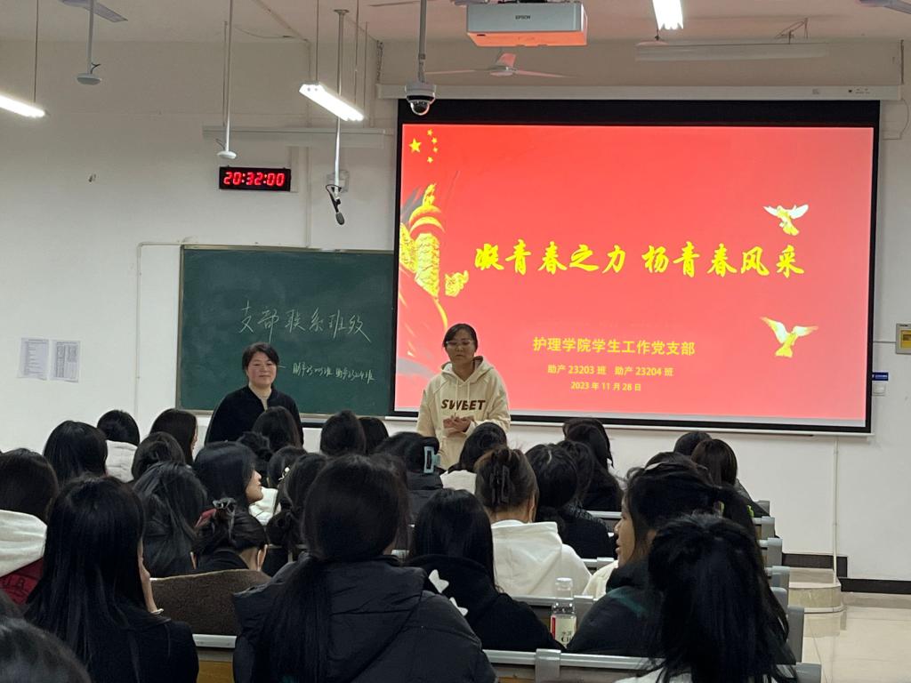 本站讯(护理学院 黄成 学生记者 赖梦婷 谢雨欣)为深入学习贯彻党的二十大精神,落实立德树人根本任务,切实做好支部联系班级工作,11月28日,护理学院党总支在和济楼开展主题为“凝青春之力,扬青春风采”支部联系班级活动,学院党总支书记胡蓉、党总支副书记曲晴与助产23203、助产23204班全体同学进行交流。