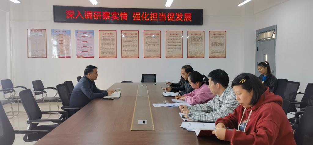 刘平涯详细了解学院现阶段思想工作情况,重点关注师生反映的主要问题和需求。院党总支书记罗平、院长黄卉、党总支副书记兰七荣、副院长付菲,全体行政人员和教研室主任参加会议。