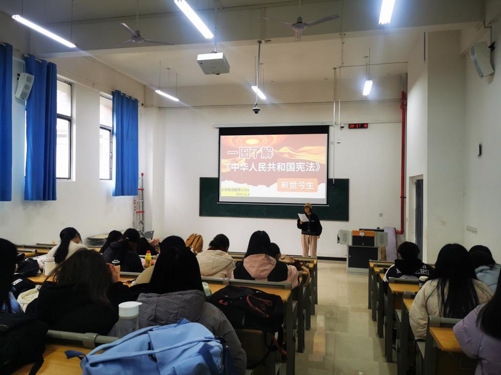 本站讯(国际教育学院 郭学琪 周熙睿)为培养学生法治观念,引导学生形成“学法、知法、守法、护法”意识,12月4日晚,国际教育学院在各班教室开展“第十个国家宪法日”主题班会,会议由各班班主任主持。