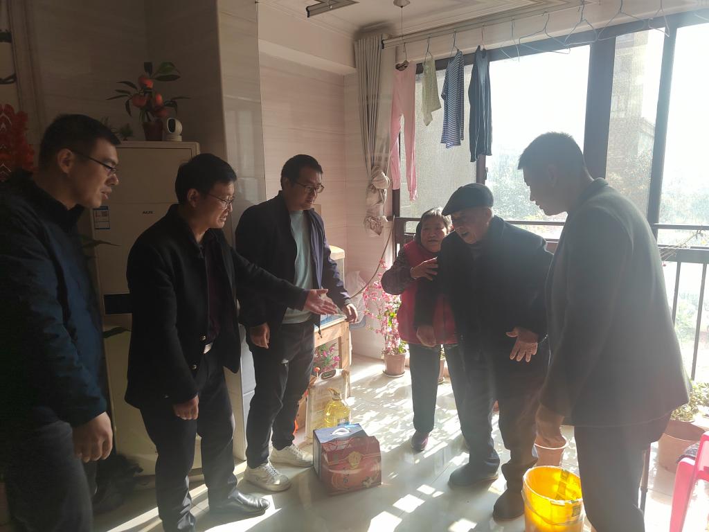 座谈结束之后,在沥江社区书记周昆的陪同下,走访慰问社区几位困难群众,了解他们的生活情况和身体健康状况,并送上慰问金、食用油大米等生活物资。
