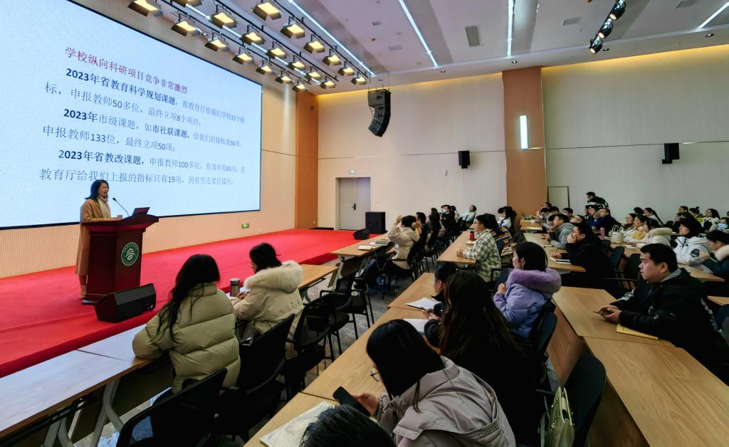 本站讯(科研处 魏微)“虽然天气寒冷,但老师们的科研热情让我们的学术报告厅倍感温暖,非常开心能和各位老师一起分享横向科研项目申报的政策和技术,为老师们做好科研提供帮助”,12月19日下午,科研处处长敖美蓉温馨的开场语拉开了讲座序幕。讲座在天工楼四楼学术报告厅举办,来自各二级学院、教学部的140余位教师参加。