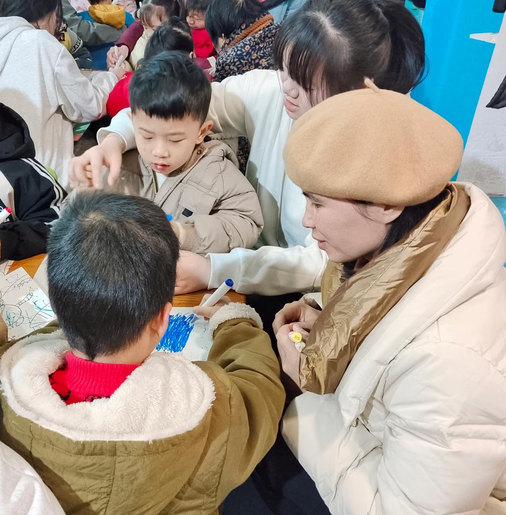 表演结束后,同学们在党员老师的带领下,和小朋友们一起画画,现场气氛非常温馨。师生们还将精心准备的小礼物发放给小朋友们,并合影留念。