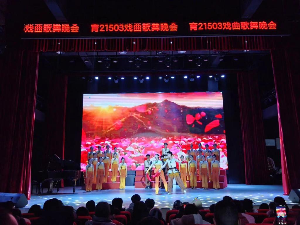 “正青春,绽光彩”艺术教育21503班周末晚会。党政办公室主任高华兵,艺术与设计学院党总支书记罗平、副院长付菲 、党总支副书记兰七荣来到晚会现场,与300余名学子共同观看演出。