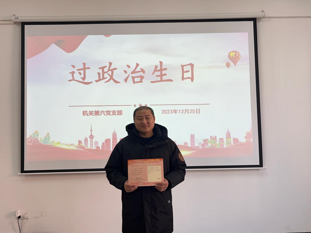 接着,为刘章涛同志过“政治生日”。谢海英送上生日贺卡并表示祝贺,刘章涛同志发表感言:作为一名党员,一定时刻不忘自己的政治身份,牢记初心使命,切实将各项工作落到实处,为师生办实事、办好事,争做一名优秀党员。