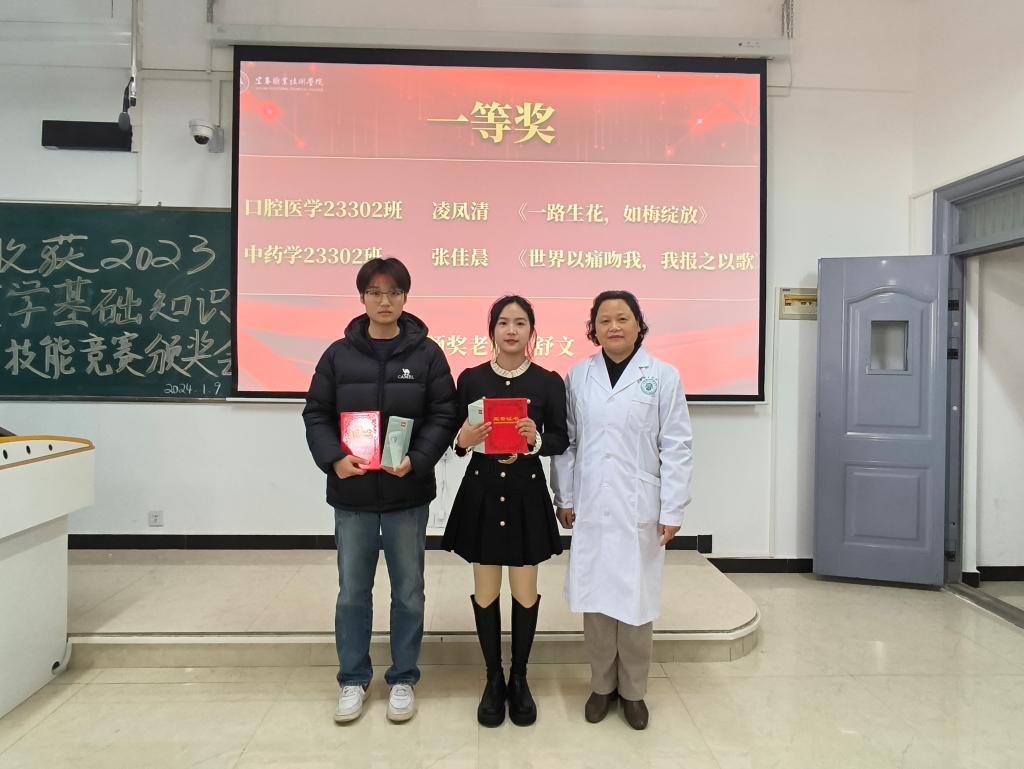 本站讯 (医学基础部 尹史帝)为践行以学生为中心的教学理念,推进基础医学教学改革,11月-12月,在医者初心人文社的协助下,医学基础部举办了医学基础知识与技能竞赛活动。1月9日下午,医学基础部在和济楼C304教室举行“收获2023——医学基础知识与技能竞赛颁奖大会”,医学基础部党支部全体党员和医学形态教研室所有教师参加。
