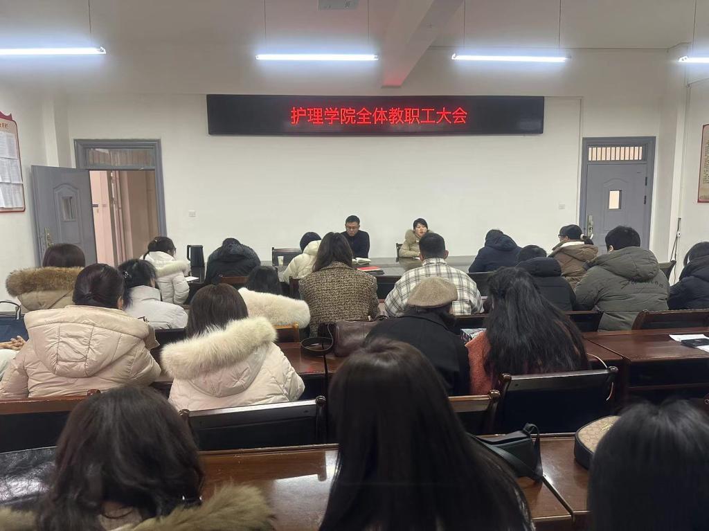 本站讯(护理学院 曲晴 汤琼)春来征程万里阔,扬帆起航正当时。为促进教师成长、凝聚教师合力,确保新学期各项工作高效有序运行,2月27日上午,护理学院在和济楼C218会议室召开全体教职工大会。护理学院班子成员及全体教职工参加,会议由院长吴少林主持。