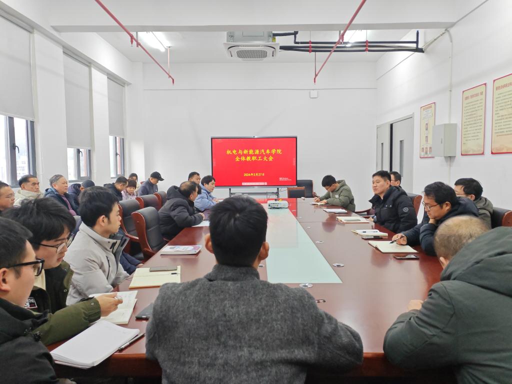 本站讯(机电与新能源汽车学院 何仪)守正创新促实效,接续奋斗谱新篇。2月27日下午,机电与新能源汽车学院在新能源技术工程中心508会议室召开全体教职工大会。会议由院党总支书记赵琰主持,全体教职工参会。