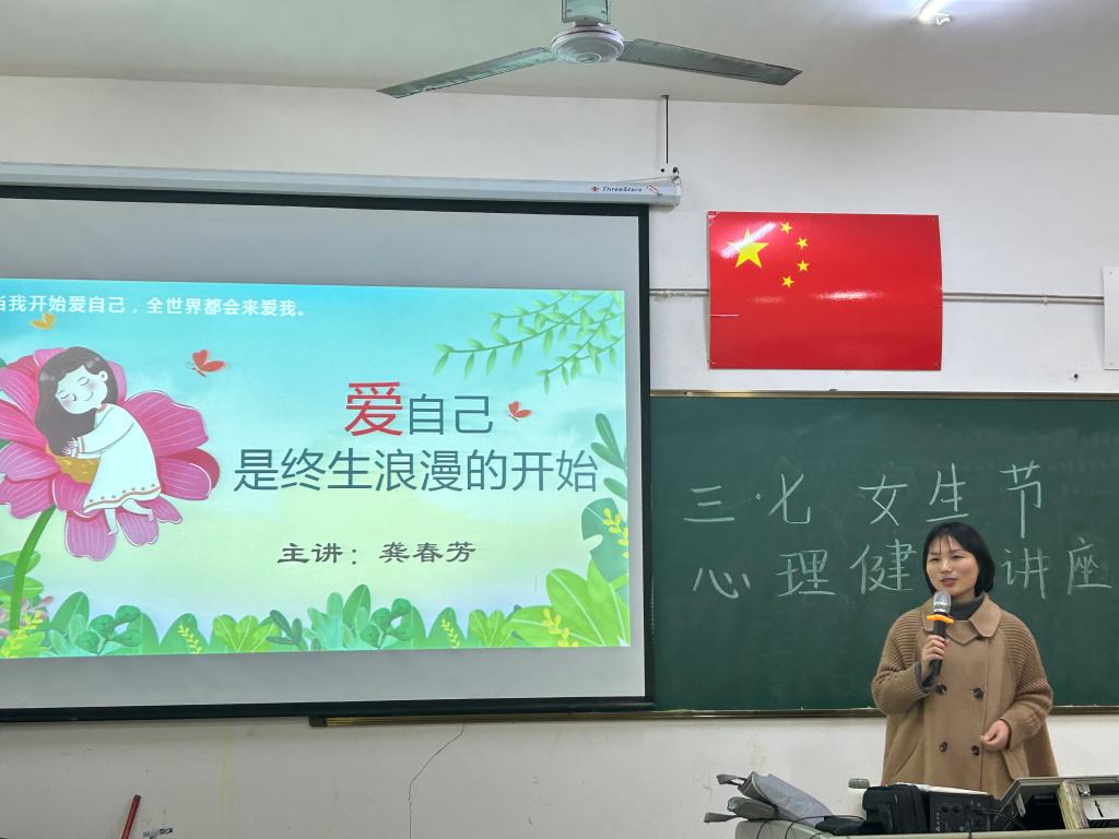 本站讯(技校 许艳娣)为活跃校园气氛,关爱女性,营造良好的心理健康氛围,3月6日,在“三·七”女生节来临之际,技校联合校心理健康教育中心举行女生节心理健康讲座。讲座特邀国家二级心理咨询师、校心理健康专职教师龚春芳老师授课,100余名女学生聆听讲座。