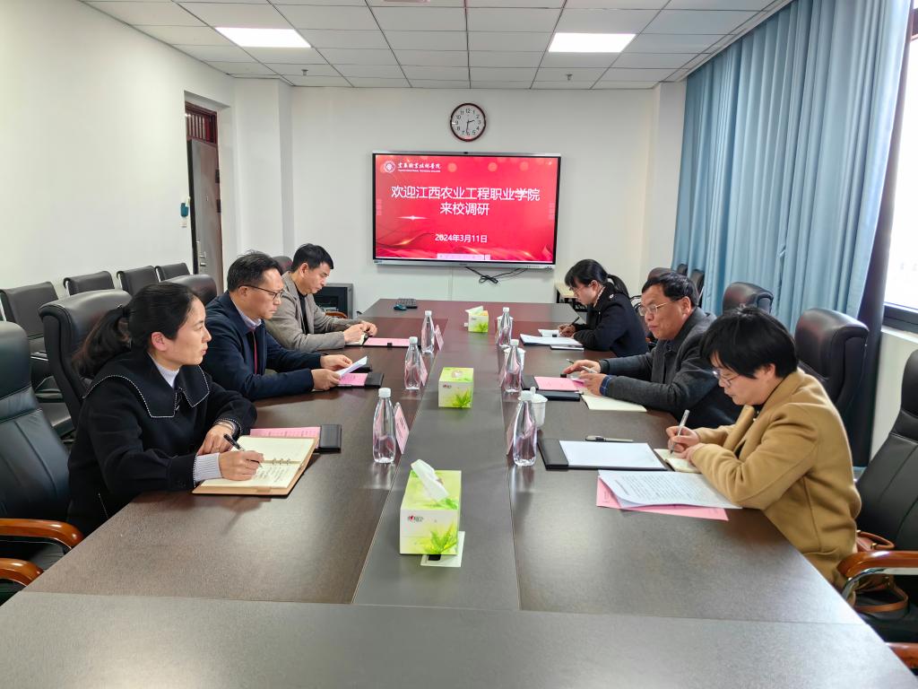 本站讯(党政办公室 章博文)3月11日下午,江西农业工程职业学院党委副书记章小朋一行三人来校调研并座谈,买球官网党委副书记黄继斌及相关部门负责人参加调研座谈会。