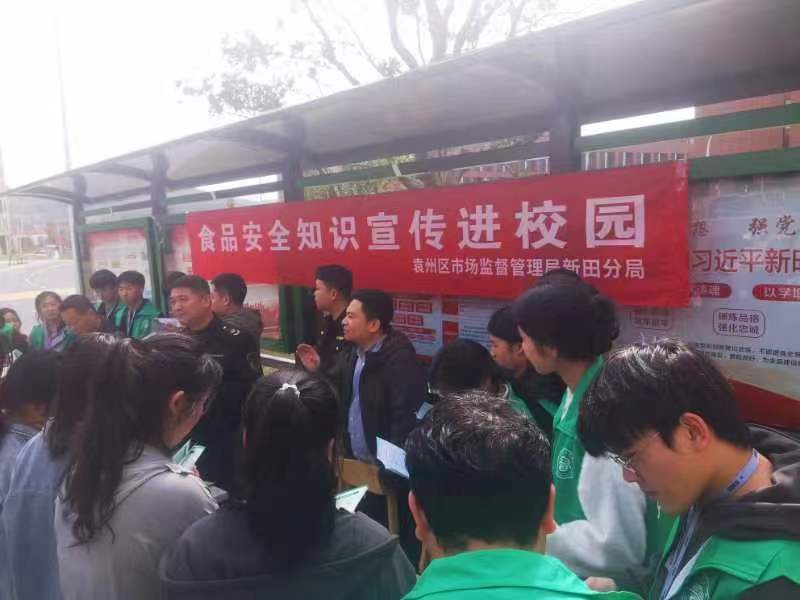 本站讯(后勤产业处 周元军)3月19日下午,袁州区市场监督管理局新田分局在买球官网东区食堂广场开展“食品安全知识宣传进校园”活动。