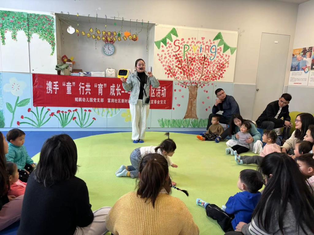 本站讯(鲲鹏幼儿园党支部 徐艳梅)为更好地发挥幼儿园在社区早期教育辐射指导作用,让社区0——3婴幼儿能够获得更多的早期教育服务,帮助社区家庭提升育儿理念,3月20日下午,幼儿园党支部联合富润社区开展“携手‘童’行 共‘育’成长”早教进社区活动,共有23位婴幼儿及家长参与活动。