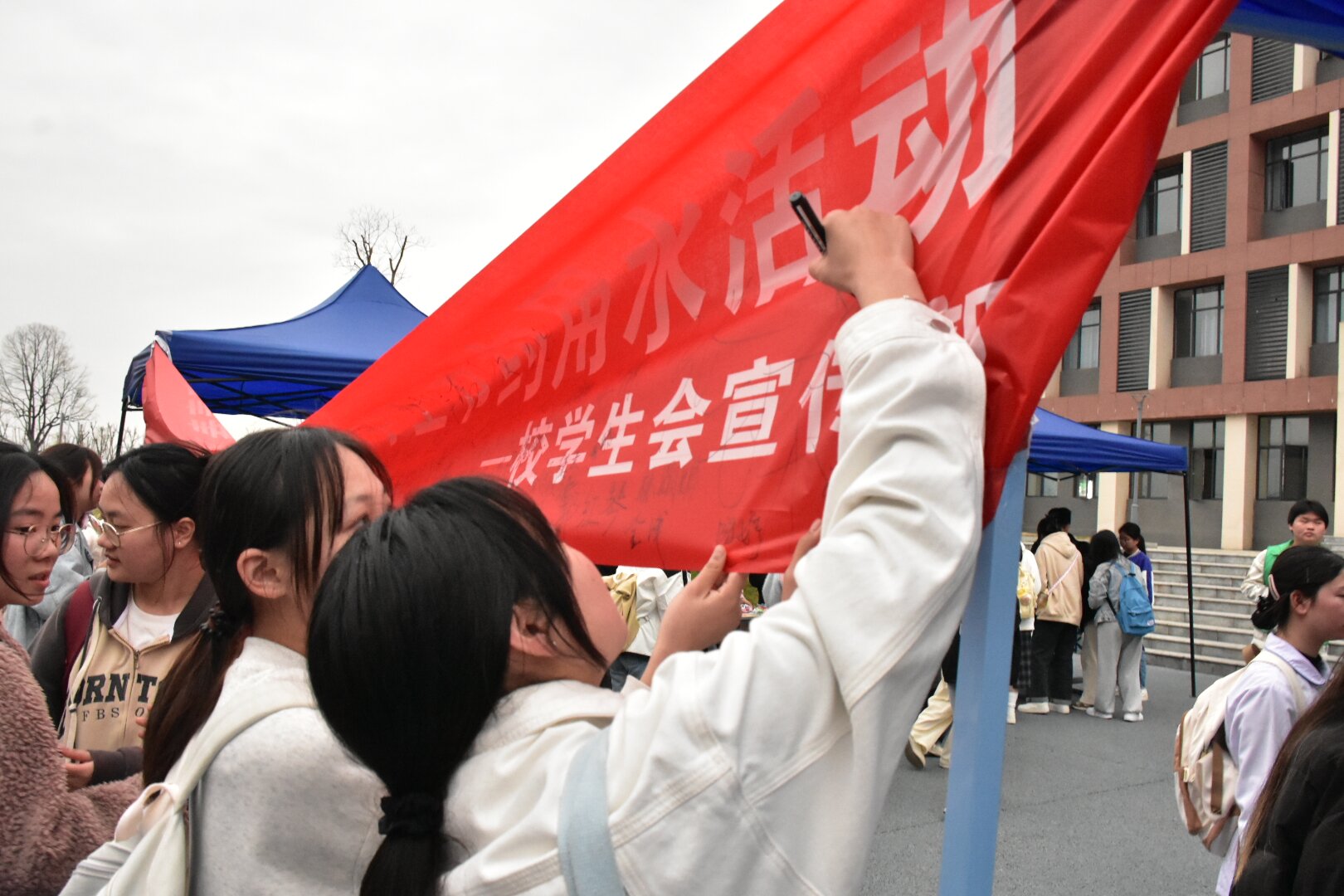活动现场,志愿者积极地向同学们讲解“依法治水”“共护母亲河”等知识理念,并通过放置海报、节水征语等方式宣传,让广大师生意识到节约用水的重要性。同学们积极地在签名板上写下对节水的认识和宣言,并发送节水征语至宜春职院学生会官方QQ账号,争当治水的宣传者、实践者和监督者。
