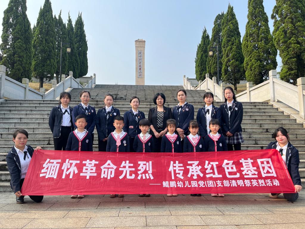 本站讯 (鲲鹏幼儿园党支部 徐艳梅)4月2日上午,鲲鹏幼儿园党支部组织开展了主题为“缅怀革命先烈 传承红色基因”清明祭英烈活动。幼儿园党支部党员,青年团员和幼儿代表共计16人参与活动。