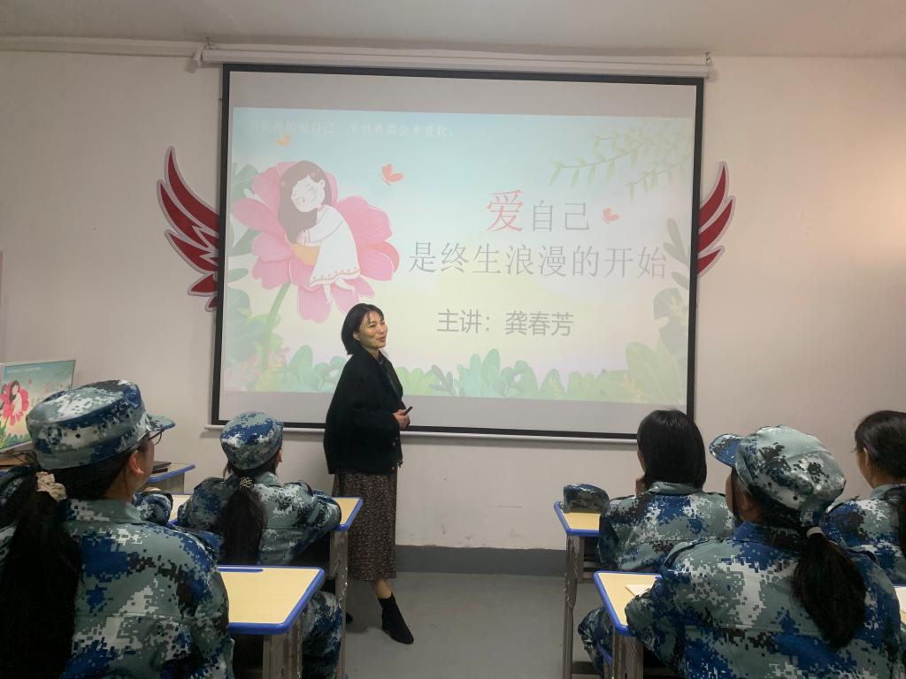 随后,龚春芳开展了以《爱自己,是终身浪漫的开始》为主题的心理讲座。她着重强调了爱自己的重要性,给予女生们众多实用建议及指导,帮助她们树立正确的价值观与人生观。之后,龚春芳为特殊学生进行了专业的心理疏导,与老师们分享了做好心理健康教育工作的经验和方法。