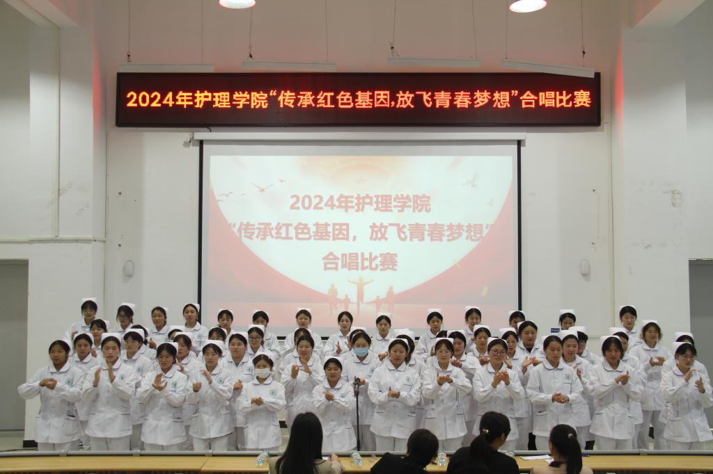 本站讯(护理学院 黄成 学生记者 刘丹 谢雨欣)为进一步弘扬红色文化,引导青年学子厚植爱国情怀,点燃青春梦想,传承红色基因,4月23日,护理学院在和济楼阶梯教室开展“传承红色基因 放飞青春梦想”合唱比赛。