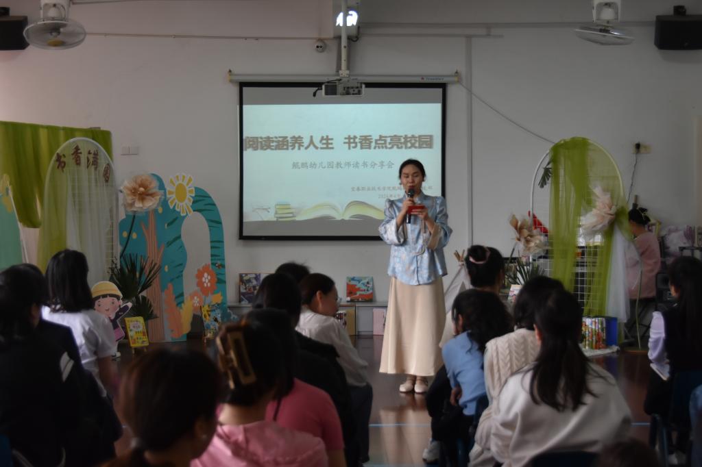 本站讯(幼儿园党支部 徐艳梅)最是书香能致远,腹有诗书气自华。为了在全园营造浓厚的读书氛围,促进教师专业成长,并激发教师在阅读中汲取智慧,树立终身学习的教育理念。4月26日下午,幼儿园党支部组织开展了主题为“阅读点亮人生 书香涵养校园”第三届教师读书分享会,共有43教师参与聆听,9位教师代表参与现场分享。