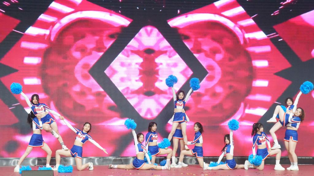 同学们展示了高跳、交叉跳、一字马等专业动作,结合不同的口号和队形变换,踏着欢快的节拍灵活舞动。他们配合默契,动作熟练,每一个转身、每一次跳跃都展现了青春的活力和激情,彰显了买球官网学子积极向上的精神风貌。