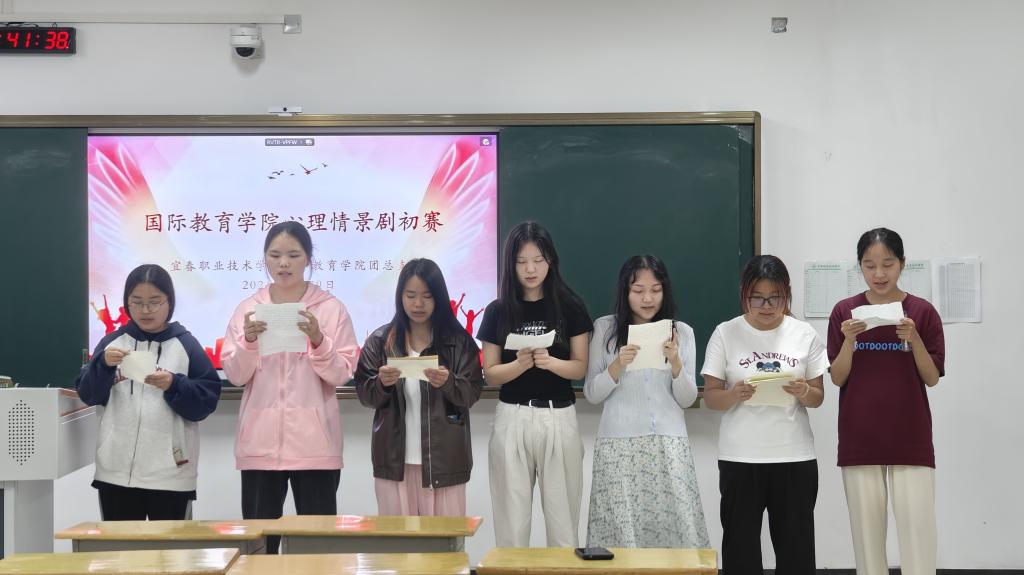 本站讯(国际教育学院 彭娟 学生记者 周熙睿)为丰富校园生活,提升心理健康水平,促进学生情感认知能力的发展,5月8日,国际教育学院在博达楼B202举办“以美润心”心理情景剧初赛,此次初赛由学院辅导员彭娟担任评委。