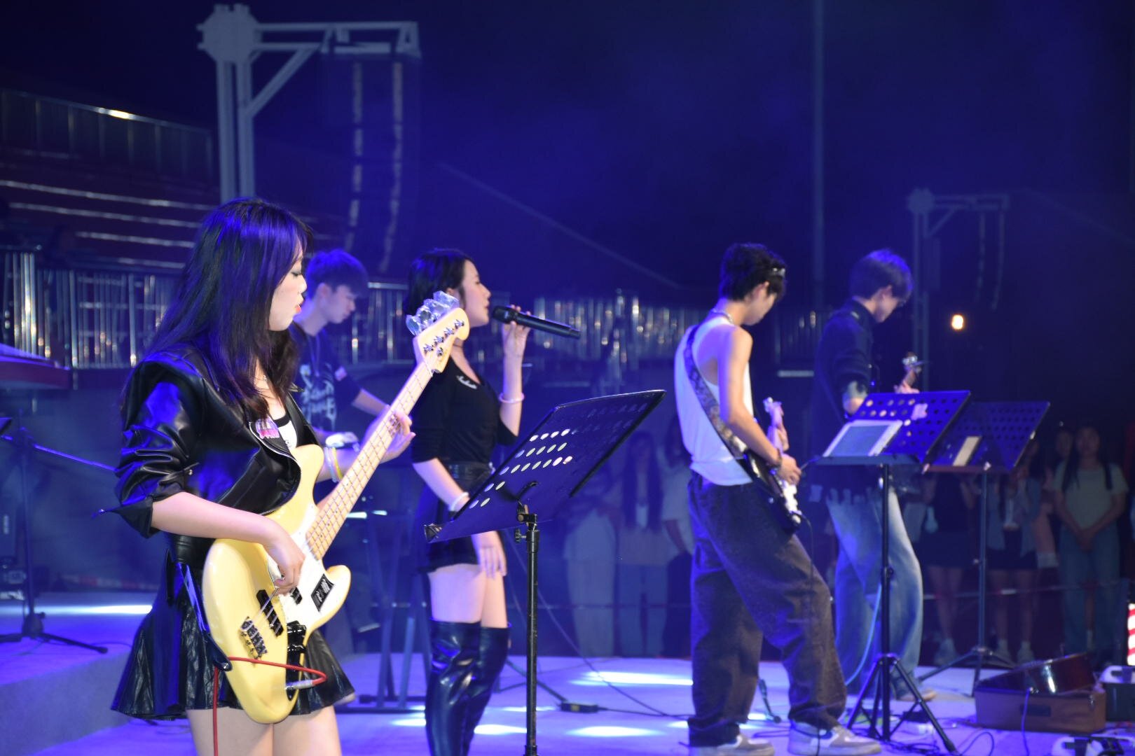 音乐一响,《月牙湾》《恋爱ing》《小城夏天》《别叫我达芬奇》演唱者闪亮登场!校团委副书记杨雨献唱《下一站天后》《说爱你》,歌声细腻婉转,轻快的旋律与歌词,鼓励大家向梦想出发,即使不能到达,也要站在群星之中!演出最后一曲《日不落》,将全场氛围推上了最高点。荧光闪烁交织着的肆意青春,让音乐节在欢乐的氛围中圆满落幕。