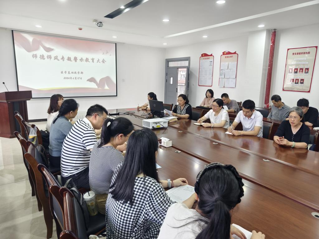 本站讯(医学基础部 吴秀银)为深入推进“春风宜人”师德品牌建设,提升教师职业道德修养,营造风清气正的育人环境,进一步提升教师队伍整体素质,6月18日下午,医学基础部在和济楼B302会议室召开师德师风警示教育大会。