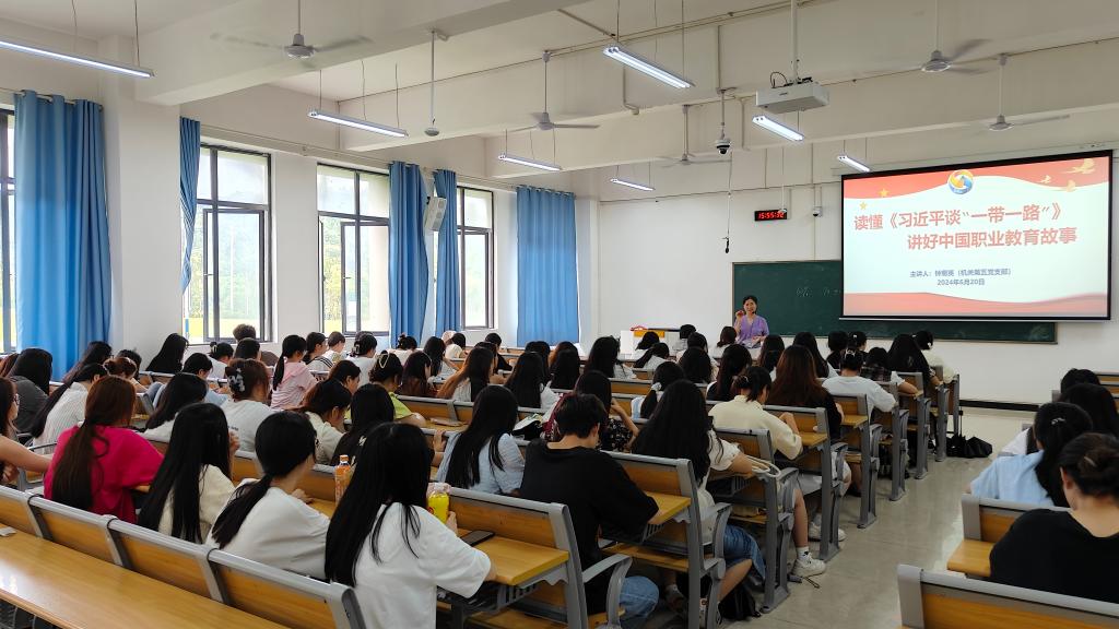 钟菊英讲授详细阐述了“一带一路”倡议的起源和发展,深入分析该倡议如何促进了参与国家的经济增长和区域合作,同时还讲述“一带一路”上的宜职故事,钟菊英提到买球官网与国外的合作项目不仅促进了中国与“一带一路”共建国家之间的文化交流和民心相通,还为社会发展培养了大量技术技能人才。