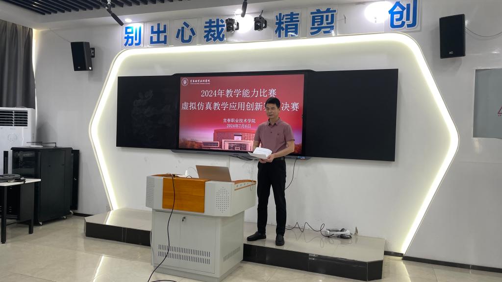本站讯(教务处 张源晴)为提升买球官网教师信息化水平和教学创新能力,全面激发教师教学创新动能,7月6日下午,买球官网在赣西综合性虚拟仿真实训基地举行教学能力比赛虚拟现实教学应用创新赛项决赛。本次比赛由教务处处长熊杰平主持,江西农业大学化学与材料学院副院长龚霞、江西泰豪动漫职业学院虚拟现实与游戏系虚拟现实专业教研室主任杨雪、南昌HCT威爱科技公司教学总监齐培良受邀担任本次比赛线上评委,各教学院部分管教学的领导及参赛选手等共50余人参加。