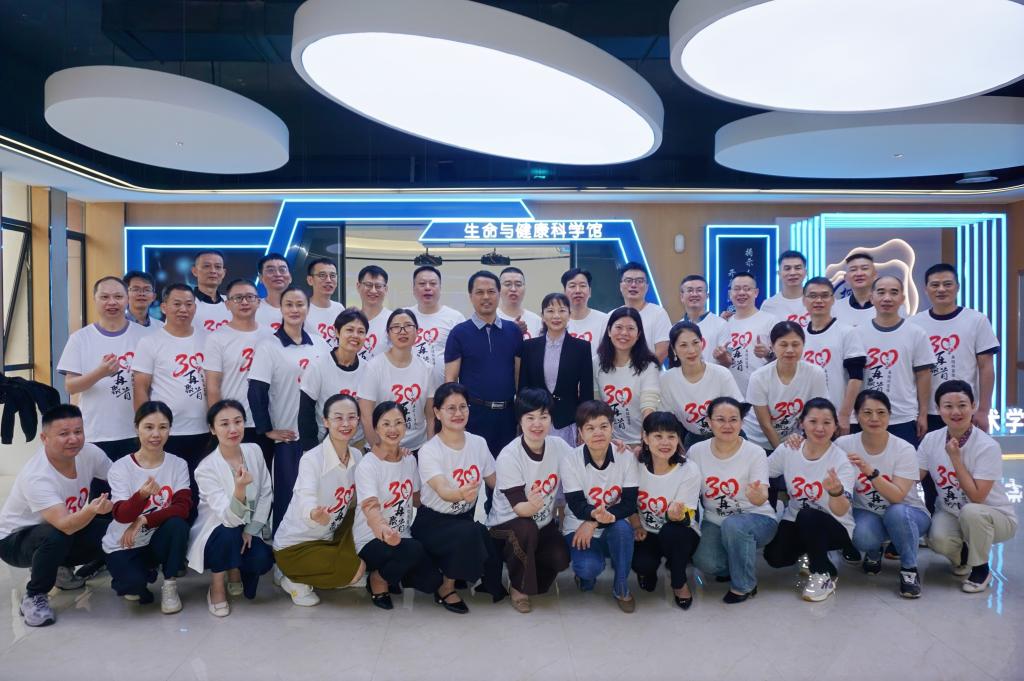 本站讯(校友办 易旭婷)10月20日,买球官网迎来了一批特殊的客人——原宜春卫生学校1994届麻醉90(1)班的38位校友们,他们与班主任熊秋华老师一同重返母校,共庆毕业30周年。校友办等相关部门、二级学院全程陪同接待,表达对校友们归来的热烈欢迎。校友们依次参观了校史馆、生命与健康科学馆、中药科技馆。