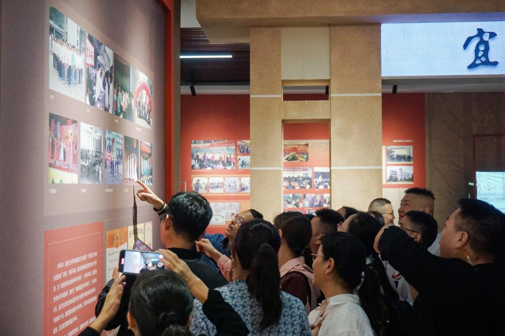 最令校友们激动的莫过于参观校史馆。这里不仅记录了学校的发展历程,还珍藏着校友们曾经的美好记忆。在校史馆的展板上,校友们找到了自己曾经的回忆,特别是看到当年参与表演的舞蹈《把根留下》的照片时,大家纷纷驻足,感慨万千。这张照片不仅记录了他们的青春风采,更象征着他们与母校之间深厚的情感纽带。