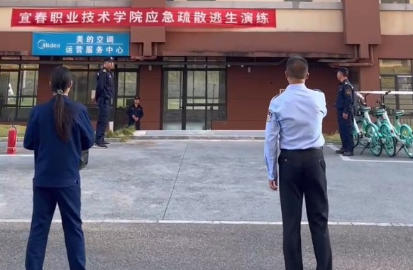 本站讯(保卫处 袁玮)为进一步提升师生消防安全意识,提高师生在火灾等紧急情况下的自我防护、自救互救能力,同时进一步检验学校消防设施的可用性和应急预案的有效性,11月12日下午,买球官网在袁州区消防救援大队指导下开展消防应急疏散逃生演练。副校长张彩凤参与指导。