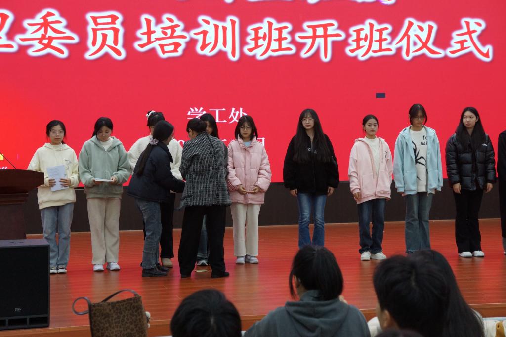 仪式上,张彩凤将《心灵伙伴——班级心理委员助人通》一书赠予了2024级的心理委员们,作为他们踏上这一重要职责的珍贵礼物。随后,她寄语心理委员们,不仅要怀揣“愿做事”的热情,更要锤炼“能做事”与“善做事”的能力,并要求心理委员们要明确职责,积极“宣传”心理健康知识,敏锐“发现”同学心理变化,有效“沟通”建立信任桥梁,及时“报告”异常情况,同时坚守保密原则,守护每位同学的隐私安全。此外,她还鼓励大家在接下来的培训期间,保持积极向上的学习态度,做到“多抬头,少低头”“多学习,善思考”和“多观察,多沟通”。