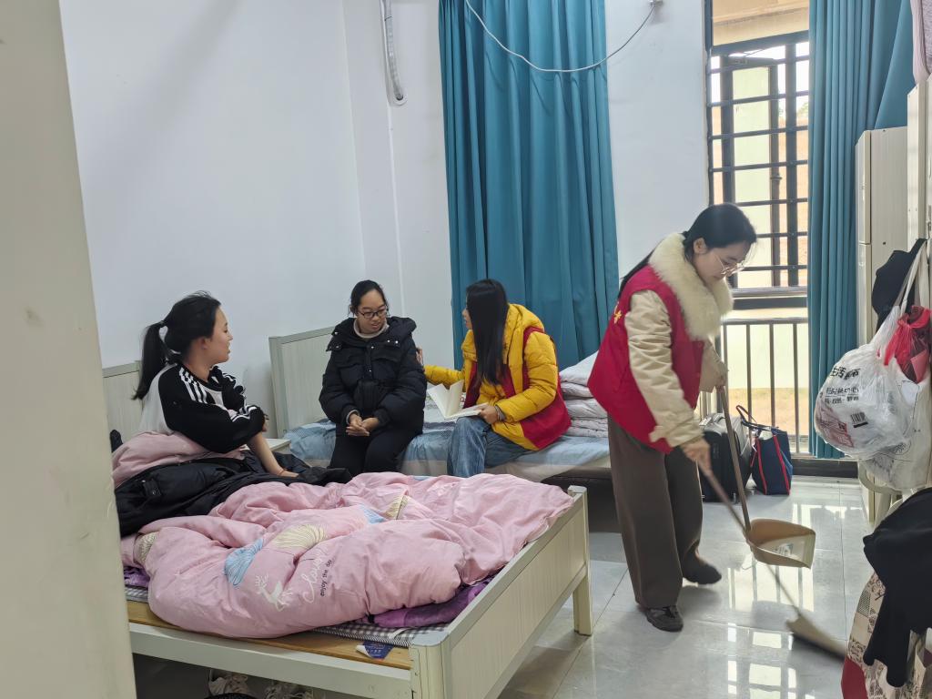 12月24日下午,支部党员来到无障碍宿舍,帮助学生清扫宿舍、跟他们开展谈心谈话。他们细心地擦拭着每一个角落,整理着每一件物品,仿佛是在为自己的孩子打造一个温馨舒适的家。两年来,机关第六党支部坚持每月及重要节假日到无障碍宿舍开展爱心服务。在长期的相处中,学生与党员们也越来越亲近。从专业学习、成长规划、校园生活以及近期遇到的困惑,大家成为了无话不谈的朋友。学生感受了老师们细致入微的关爱,更体验到了学校带给她们前行的力量。老师们看到特殊学生的变化与成长,也感到特别欣慰。