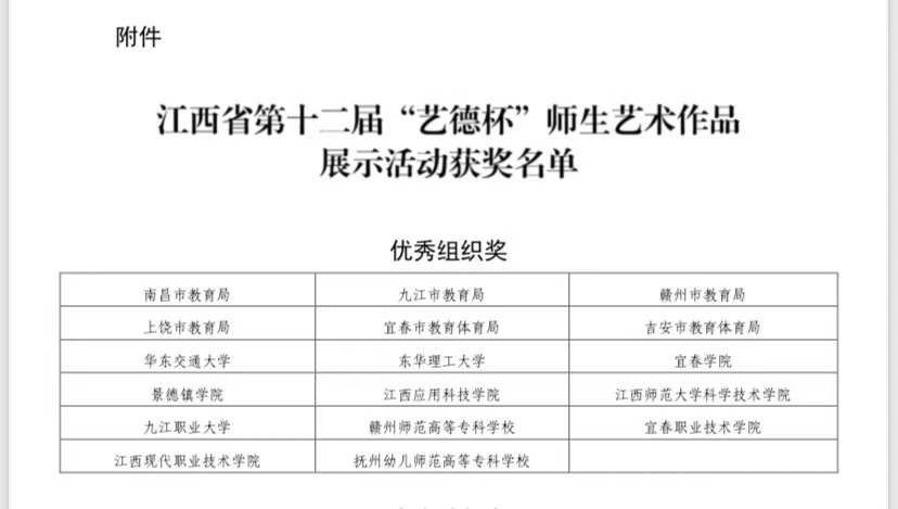 本站讯(艺术与设计学院 曹斐)为深入贯彻落实中共中央办公厅、国务院办公厅及教育部、省政府办公厅关于全面加强和改进新时代学校美育工作的相关意见和实施方案精神,进一步强化学校美育育人功能,弘扬中华美育精神,买球官网师生积极参加江西省第十二届“艺德杯”比赛。