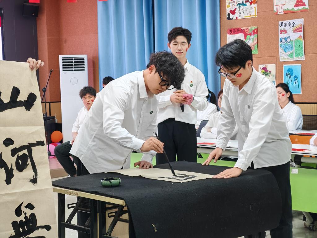 活动以国家安全主题视频开场,随后将国家安全主题与书法艺术深度融合并进行案例分析,引导同学们认识到维护国家安全的重要性。智解灯谜会环节通过古汉语书写的形式,展示多种形式的国家安全,增强同学们的忧患意识和社会责任感;现场书法创作的展示,也写出了“山河无恙、国泰民安”的美好愿景;最后的大合唱《国家安全之歌》铿锵有力,切实汇聚起全校共同维护国家安全的强大合力。活动结束后,阮丛韬表示在活动过程中同学们理解了国家安全的重要性,希望同学们能为构建平安校园、平安中国贡献青春力量。