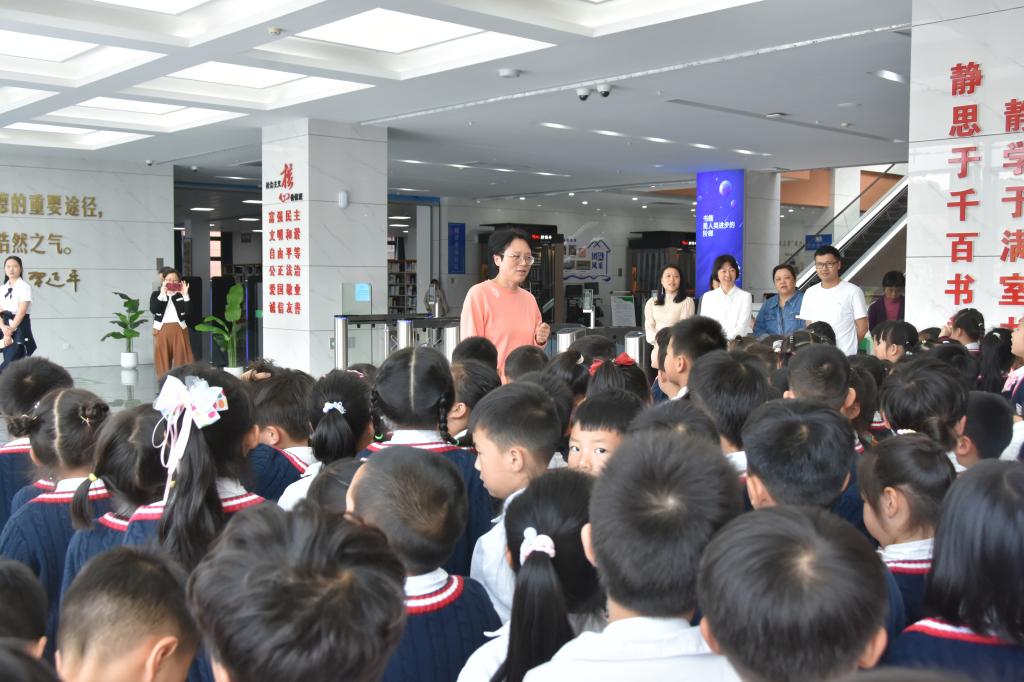 “我是中国人,我们都是中国人,中华民族是一家!”清脆的童声响彻新校区开物广场,整队、报数......近200余小朋友排着整齐的队形走进了图书馆。