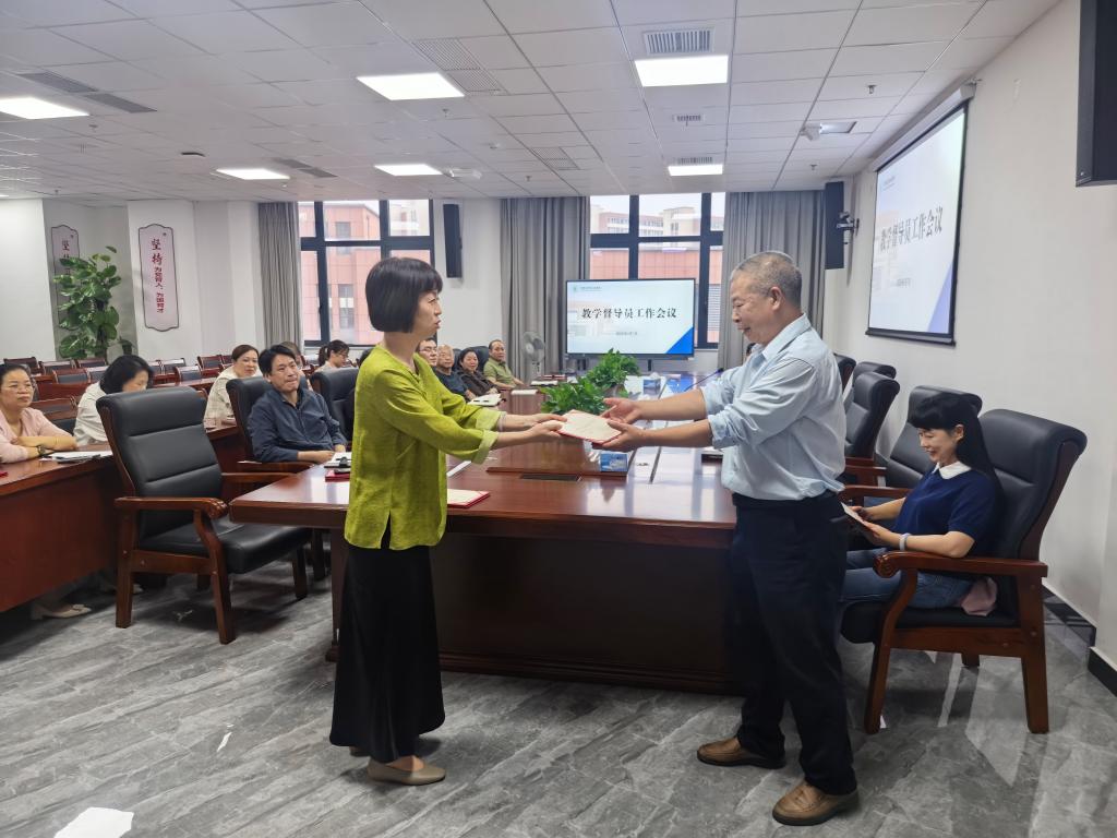 会上还举行了2025年度教学督导员聘书颁发仪式,邓伟蓉为新任督导员颁发聘书,并对他们加入教学督导队伍表示热烈欢迎,同时向督导员在教学质量保障体系中付出的辛勤努力表示衷心感谢。她强调,教学督导工作对学校教育教学质量的持续提升具有重要意义,要着力构建“督有力度、导有温度”的工作格局:一是加强督导工作的组织协调;二是强化教学督导工作的过程性、精准性;三是突出教学督导工作中“导”的作用。
