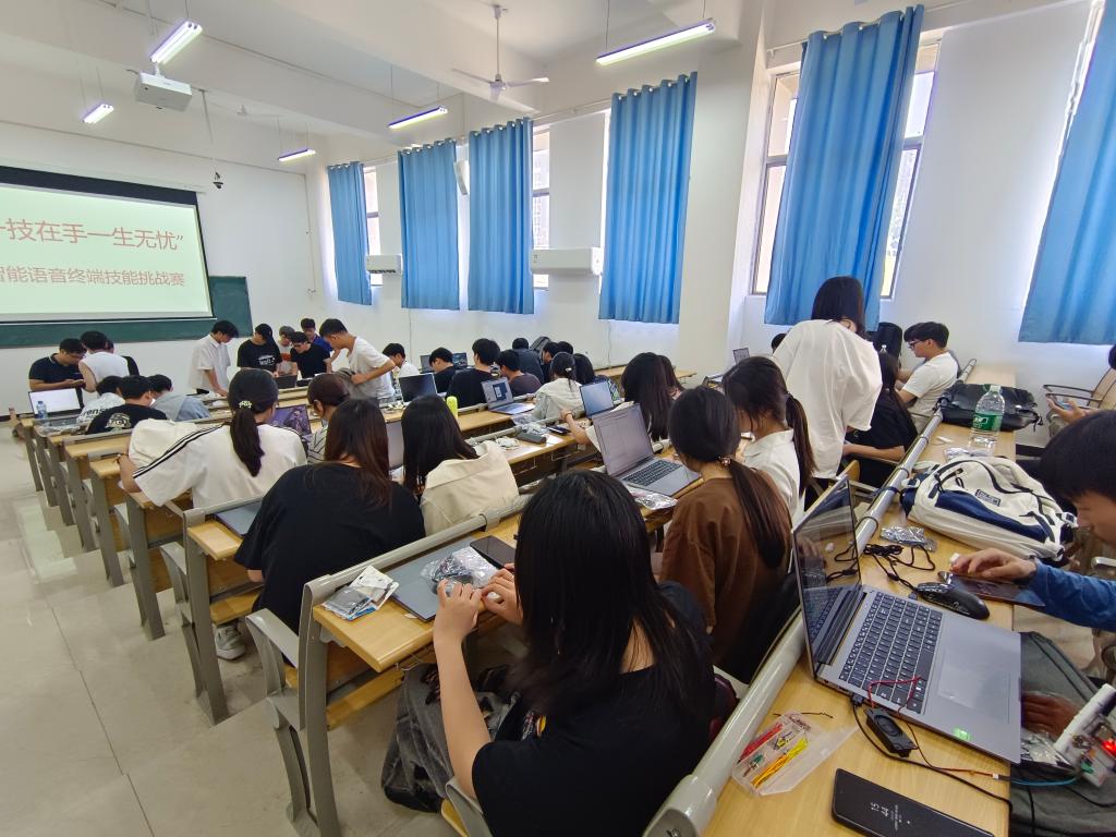 本站讯(信息工程学院 王乐)为强化学生硬件装配与系统调试核心技能,对接智能终端产业人才需求,5月12日下午,信息工程学院在智云楼B102教室举办职业教育活动周“智语未来・声动职涯” AI智能机器人组装技能挑战赛。来自信息工程学院的97名选手同场竞技,学院副院长陈根金以及专业负责人周俊杰担任评委。