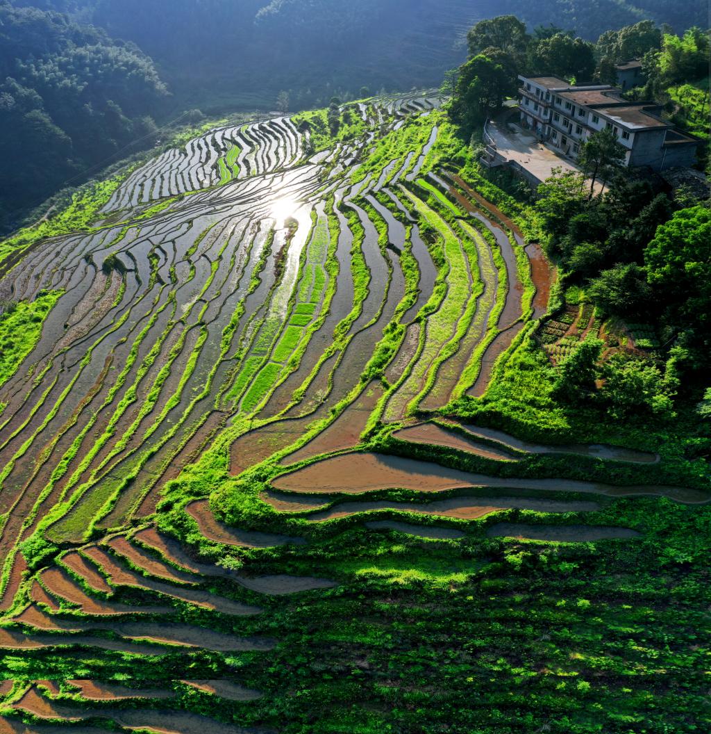 为了能拍出最好的摄影作品,欧阳老师吃了不少苦。印象最深的是为了拍摄袁州区温汤镇谢坪村的梯田,下农田时,因为长时间的拍摄,加上田间毒虫甚多,欧阳老师的手腕上、胳膊上被咬了巨大的包,严重到必须得拔罐才能排毒好转。