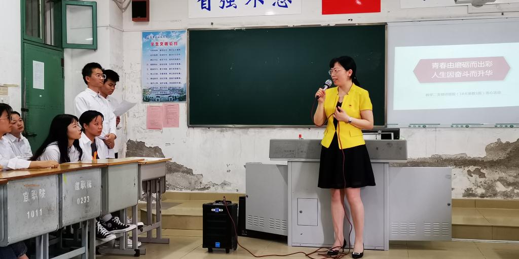6月13下午,在热烈的欢迎掌声中,教学第二党支部党员教师在支部书记熊淑萍带领下,来到一教楼西404教室,与18大英教1班的38位同学进行面对面交流,开始了连心活动。大合唱《我和我的祖国》气势磅礴,慷慨激昂;曾骏老师与学生一起朗诵的红色家书,铿锵有力,感人至深,令人泪下;同学们满含深情地朗诵了《祖国,我亲爱的祖国》《他们用逆行换取春天的诗行》;熊淑萍书记讲述了自己的亲身经历和成长感悟,勉励大家珍惜青春时光,在奋斗中实现人生理想,为同学们上了一堂内涵丰富的励志课。