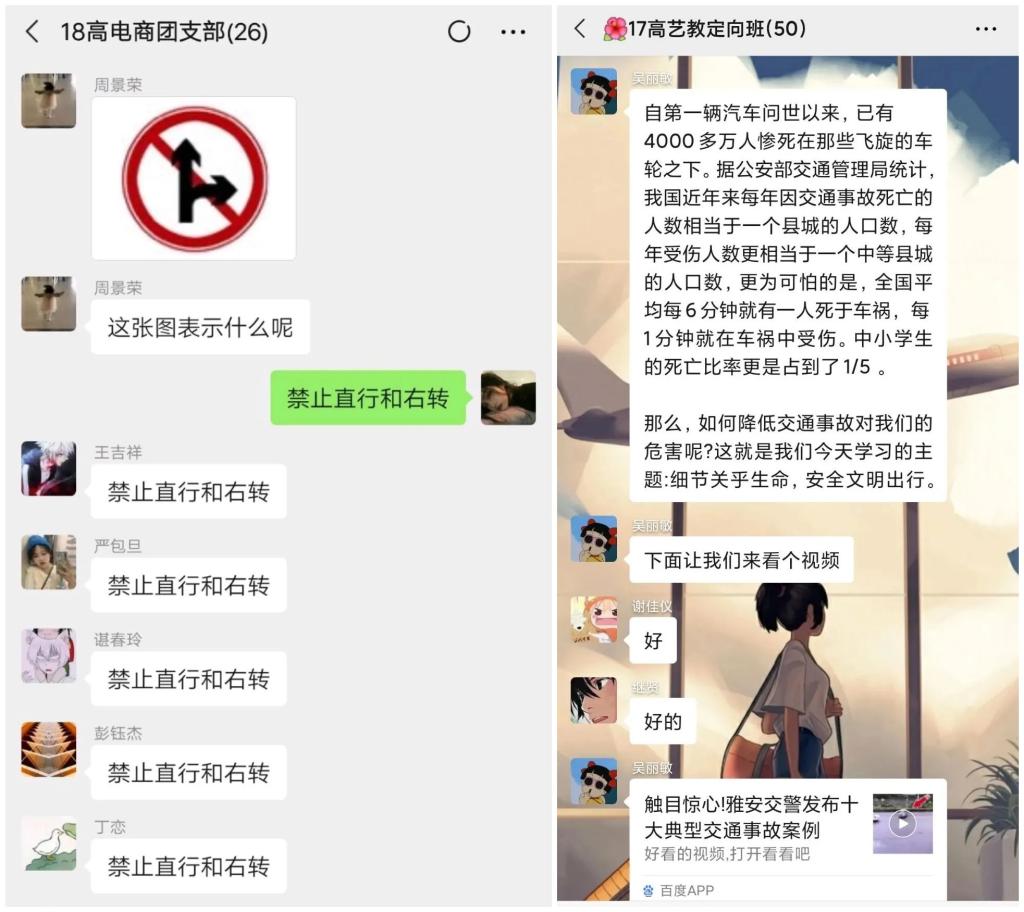 各团支部紧扣主题,灵活运用线上平台,通过观看视频、PPT展示、交通常识问答等多种形式开展主题团日活动。同学们通过观看往年全国交通安全日教育专题视频,对视频案例中所发生的交通事故进行讨论,发表个人见解和心得,从中感悟到遵守交通法规的重要性,树立交通安全文明意识。