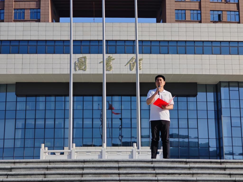 国旗下,周勤对于学生行为规范做出要求,强调要注重文明礼貌养成,做到尊敬师长,培养自身良好行为习惯。随后,宋宝来对于学院全体学生班风、学风建设提出要求,强调纪律的重要性,引导学生提升思想认识,认真对待课堂。