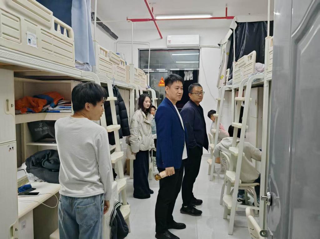 走访中,学院领导与师生亲切交流,关切学生生活学习情况,倾听困难并鼓励大家积极进取。赵琰重点强调宿舍安全,细致排查私拉乱接电线、违规使用大功率电器等问题,检查消防设施有效性与疏散通道畅通情况,同时提醒学生保持宿舍卫生,养成良好习惯。