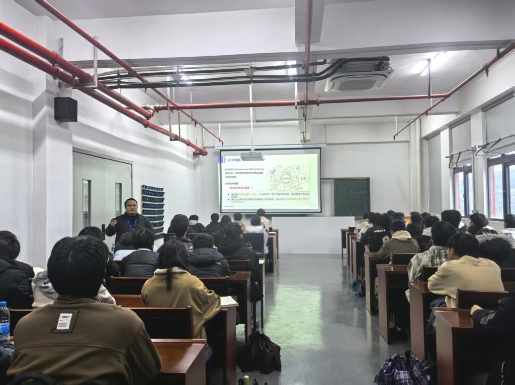 周华喜高级工程师以《TPM基础知识》开讲,从维护方式发展历程切入,阐述TPM(全员生产维护)核心内涵——以提升设备综合效率为目标、全系统预防维修为过程、全员参与的设备保养与维修管理体系,并详解自主维护、计划性专业维护等八大支柱,指出有效推行TPM可实现人员、设备及企业体质的全面优化;宁德时代二级助理主管黄涛主讲《5S基础管理与车间规范》,以互动提问开场,解读整理“一留一弃”、整顿“三定三要素”等5S具体内涵,介绍新能源车间“洁净房、干燥房、粉料房”穿戴标准及“红黄蓝绿”四色工服识别体系,通过列举车间不良行为,说明推行5S管理能提升生产效率、保障安全、延长设备寿命、优化工作环境,助力实现“创造世界一流公司”目标。