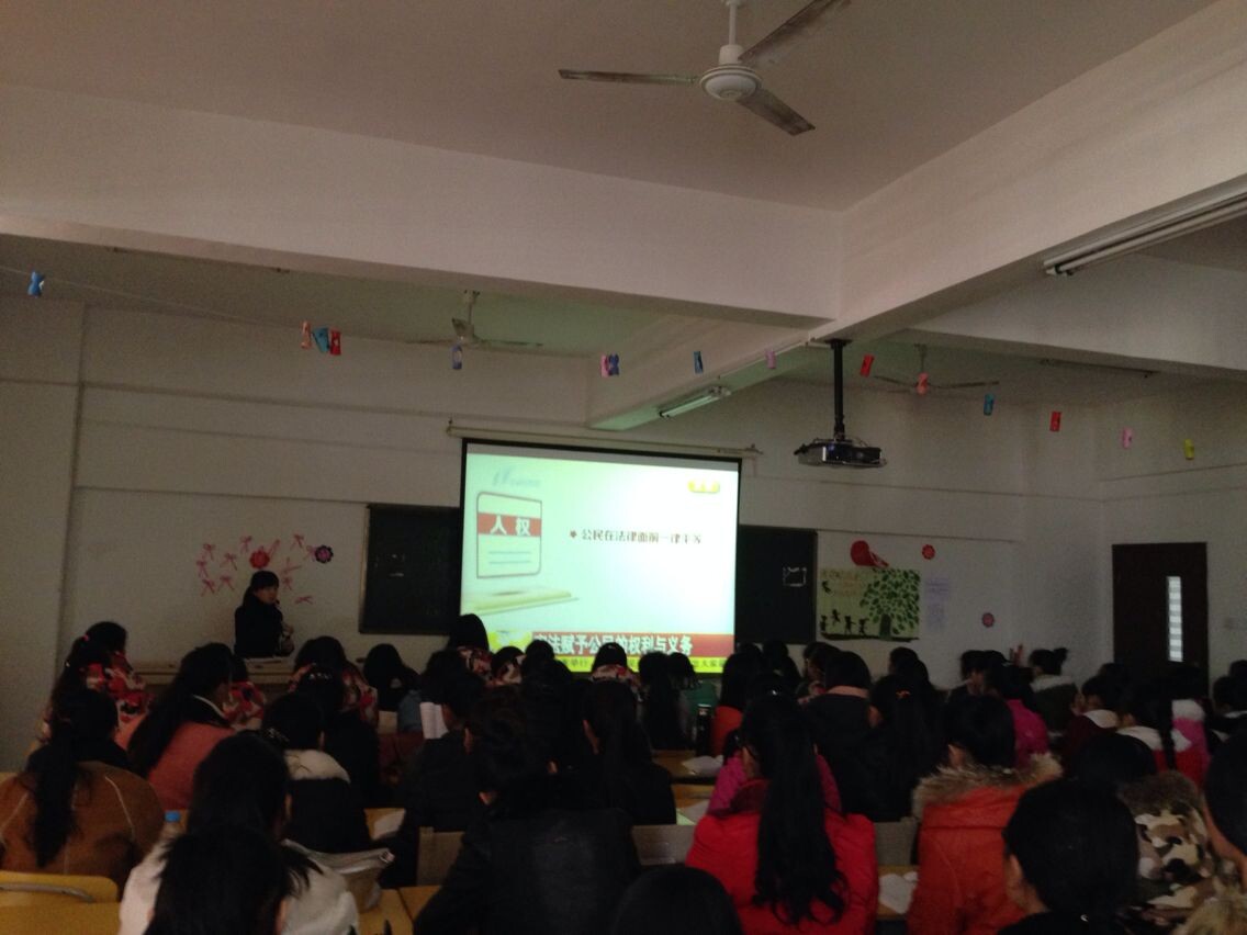 本站讯(思政部 张正芳)为进一步创新思想政治理论课教育教学方法,提升教学质量,12月23日下午,思政部组织彭慧洁、陈颖两位老师在实训大楼909教室为全体思政课教师上了两堂观摩课。授课内容分别为《思想道德修养与法律》课程中的“我国公民的基本权利和基本义务”及《职业道德与法律》课程中的“维护在家庭中的权利与义务”。