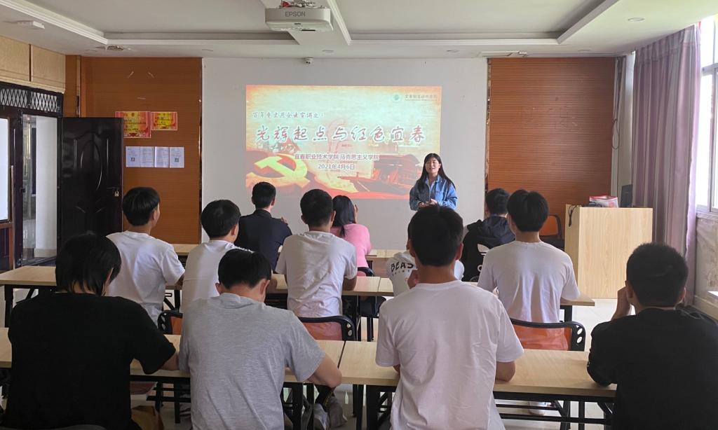 本站讯(马克思主义学院 曾骏)为创新基层党建工作方法,探索新时代下高校基层党建工作新思路、新模式,4月29日下午,马克思主义学院联合电商与旅游学院党总支,对接了买球官网电子商务专业校企合作单位——苏州几何体网络科技有限公司。马克思主义学院选派的思政课青年教师郭斓为公司项目经理文玉泽、企业党员代表及十余名校企合作实习生进行党史宣讲。