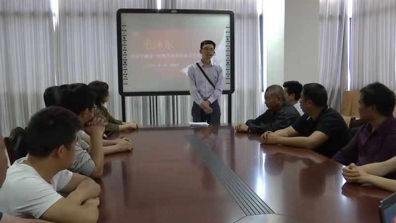 本站讯(马克思主义学院 郭斓)为贯彻落实习总书记在党史学习教育动员大会上的讲话精神,推动党史学习教育深入基层、深入群众、深入人心,马克思主义学院近期选派了部分思政课教师深入企业、社区进行党史宣讲。4月15日下午,宜春市理论宣讲团骨干库成员、体育买球官方网站马克思主义学院形势与政策教研室主任、曾骏副教授在宜春市泰极产业管理有限公司的党支部活动室,为企业党员讲授了题为《从名字解读一代伟人的成长历程》的党史学习教育专题党课。党课由该企业党支部书记兼总办主任余惠密主持。
