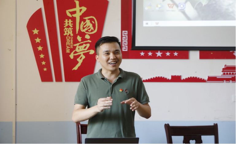 在黄源村新时代文明实践中心,黄源村驻村第一书记刘永为师生们讲述了他的驻村扶贫故事。2019年3月,宜春市万载县人社局劳动监察局局长刘永,主动要求下基层扶贫,到任双桥镇黄源村驻村第一书记后,迅速在村里开展了“抓好党建、摸清家底、宣讲政策、谋划发展、推动落实”的“五线谱”扶贫工作。他深入田间地头,走进贫困户家中,了解他们的家庭现状、致贫原因、发展意愿,对贫困户的情况认真记录,并精心绘制了黄源村贫困户地图,密密麻麻的地图标注也使他逐渐变了黄源村民的“贴心人”,这为制定脱贫措施和工作计划打下了基础。