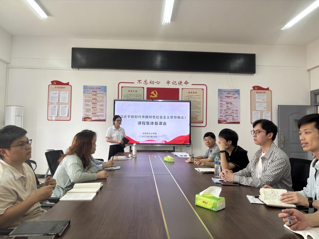 本站讯(马克思主义学院 林梓元)为进一步提升《习近平新时代中国特色社会主义思想概论》课程教学质量,提高思政课教师教学能力,推动思政课教师队伍建设,5月16日下午,马克思主义学院习概教研室于日新楼C402召开集体备课会,会议由教研室负责人万露露主持,教研室全体教师参加。