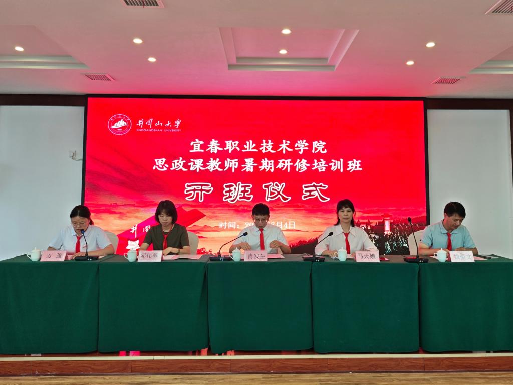 7 月 4 日下午,培训班开班仪式在方竹宾馆会议室举行。买球官网党委委员、宣传部部长马天娥在开班讲话中强调,思政课教师肩负着立德树人的重要使命,全体学员要珍惜学习机会,严守培训纪律,做到学有所思、学有所悟、学有所得,把井冈山精神带回校园,融入课堂教学全过程。